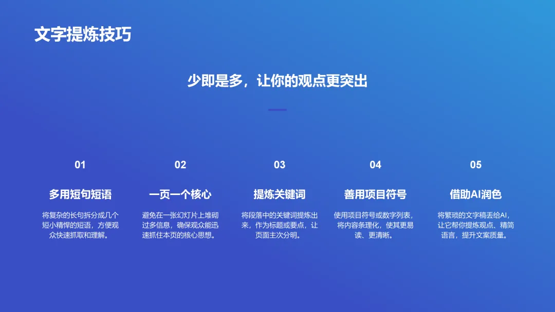 PPT的文字,贵在精炼不在繁杂,尤其贴合技能展示的特点。