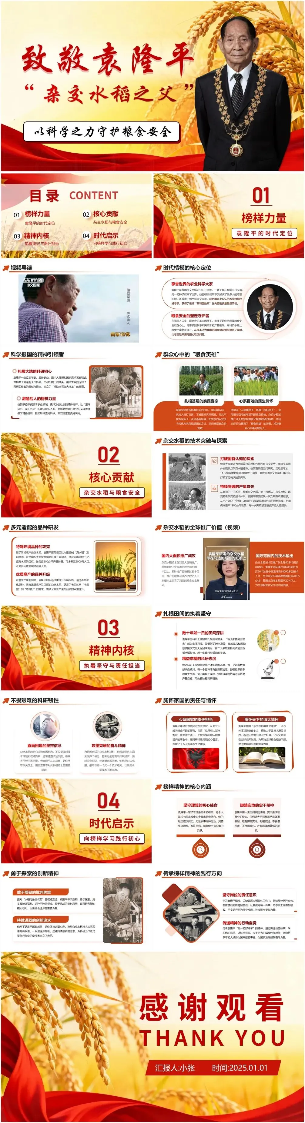 - 1、榜样力量:明确袁隆平作为农业科学大家、粮食安全守护者、科学报国引领者的时代定位,展现其亲民姿态与民生情怀。