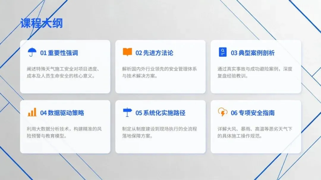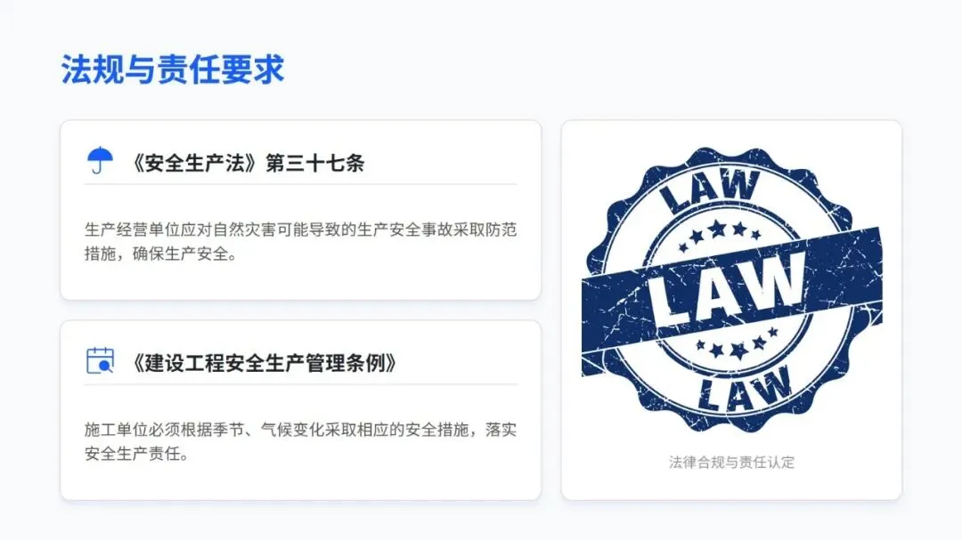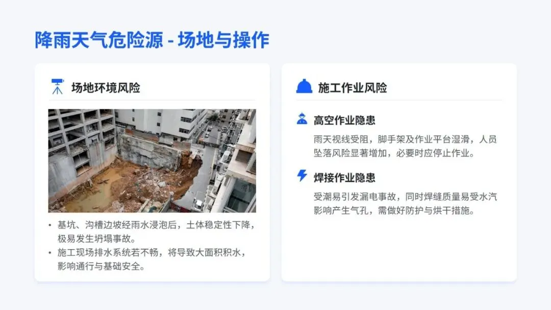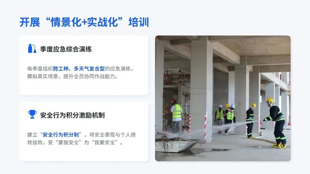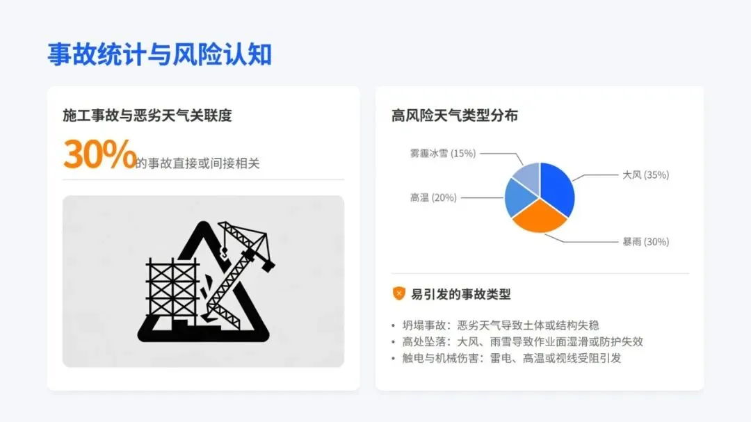 特殊天气施工安全培训,把从风险认知到实际操作的全流程安全管理讲得明明白白。首先,需要强调施工事故里近三成和恶劣天气相关,这既符合行业实际情况,也呼应了相关法规对施工企业的硬性要求,让大家清楚做好特殊天气安全防护不是额外任务,而是必须守住的底线。