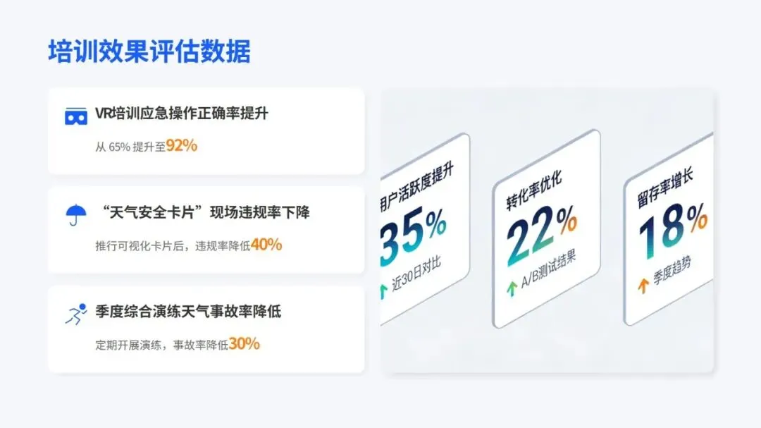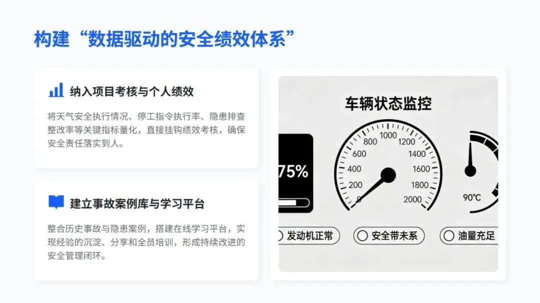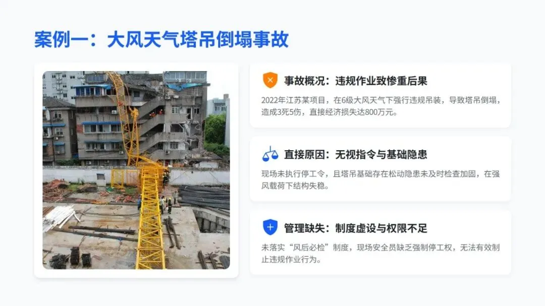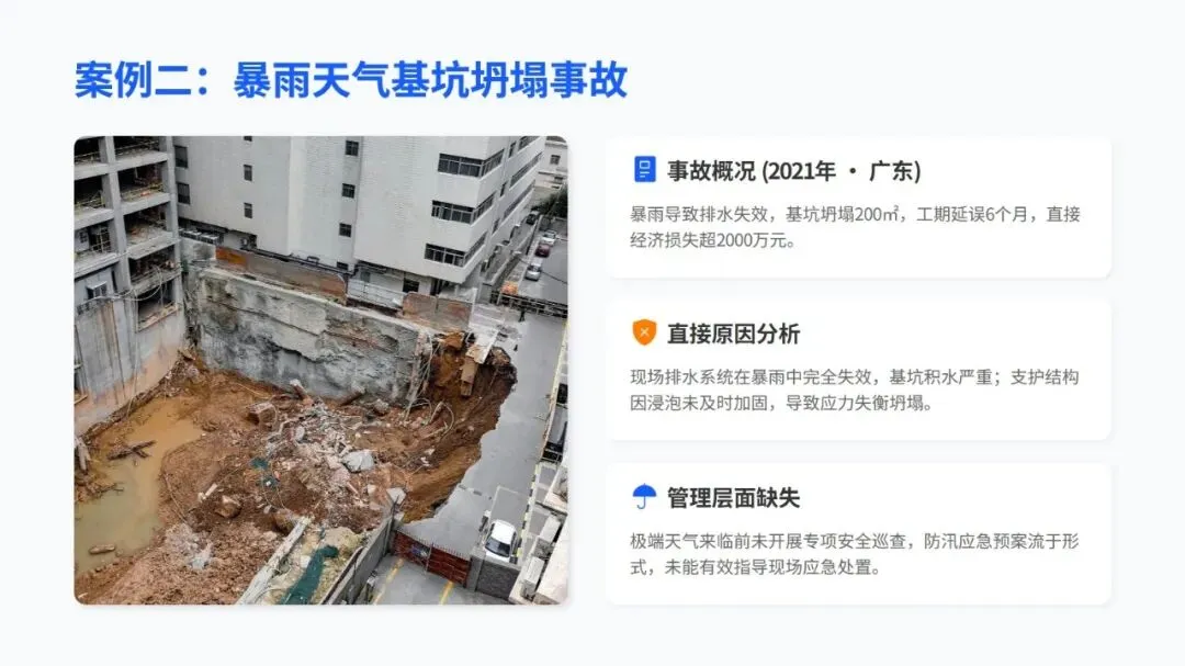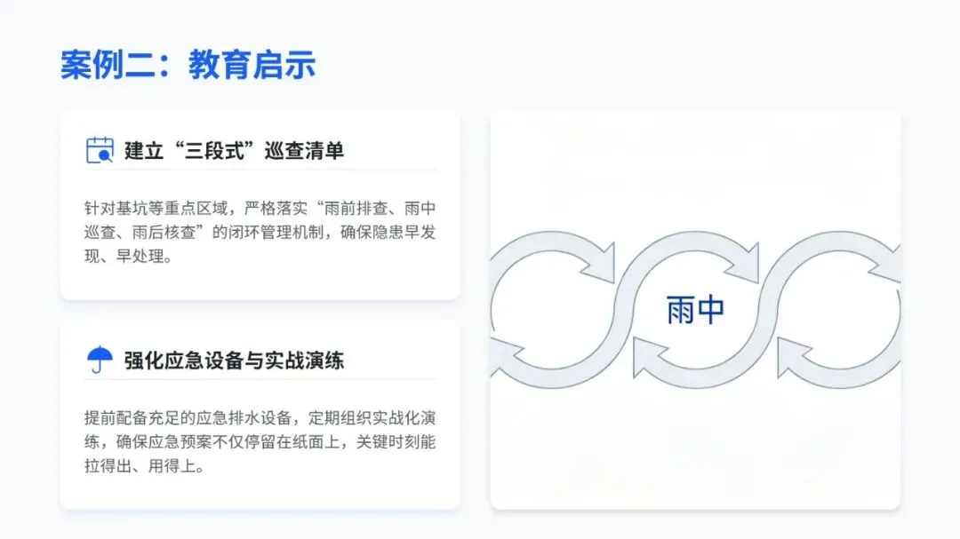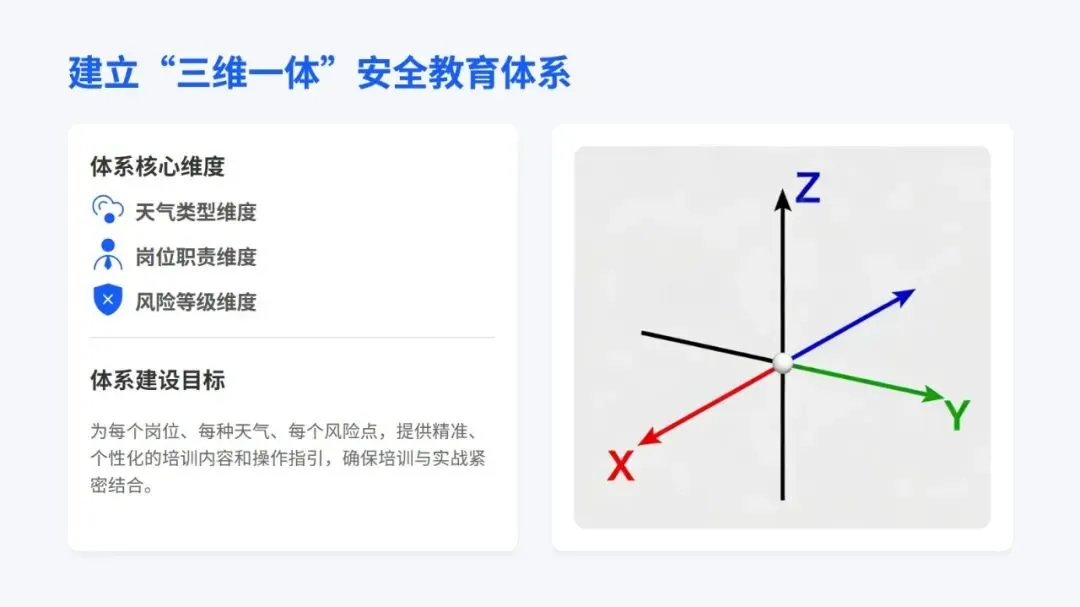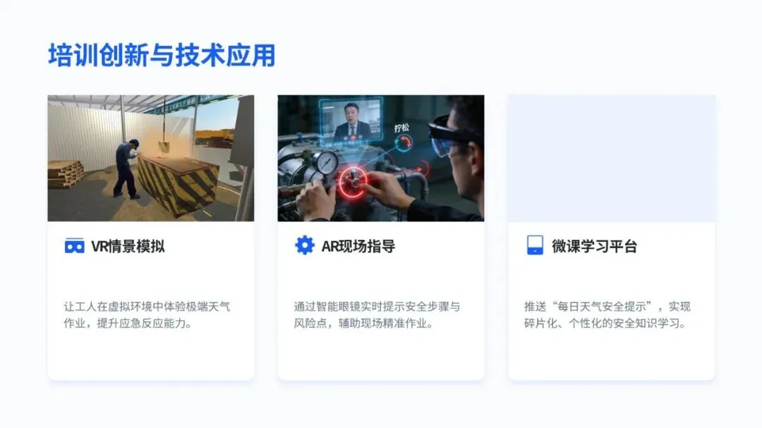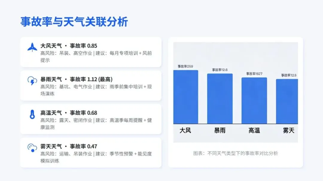 培训中不仅分享了智能预警、分级响应、VR 实景培训这些国内外实用的先进做法,还通过塔吊倒塌、基坑坍塌等真实案例,点出了事故背后管理和操作上的核心问题,让人印象深刻。同时,结合不同天气的事故发生率,给出了差异化的培训建议,还提出要搭建 “天气类型 + 岗位职责 + 风险等级” 的个性化培训体系,用 “智能监测 + 制度约束” 双保险防范风险。