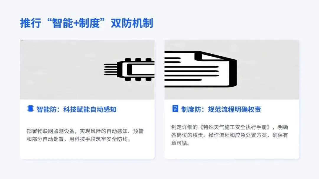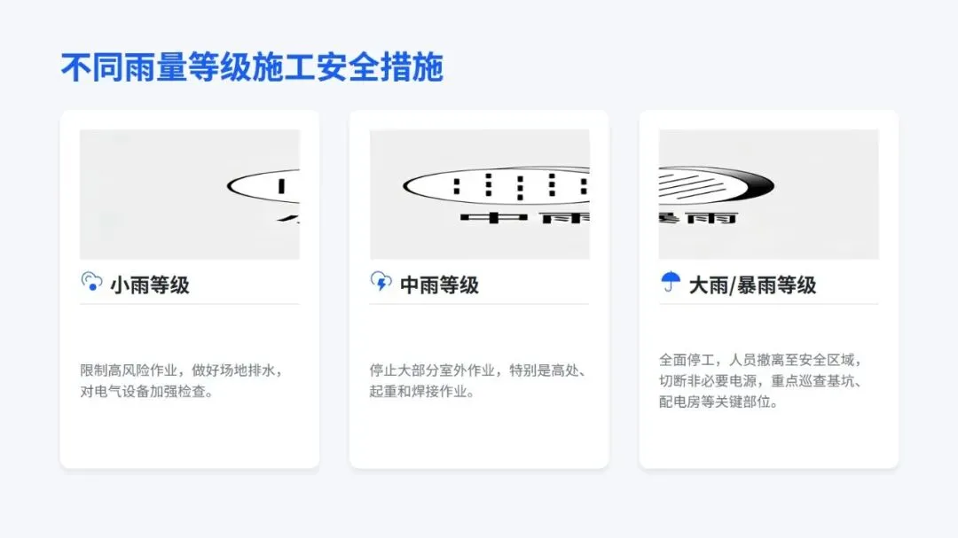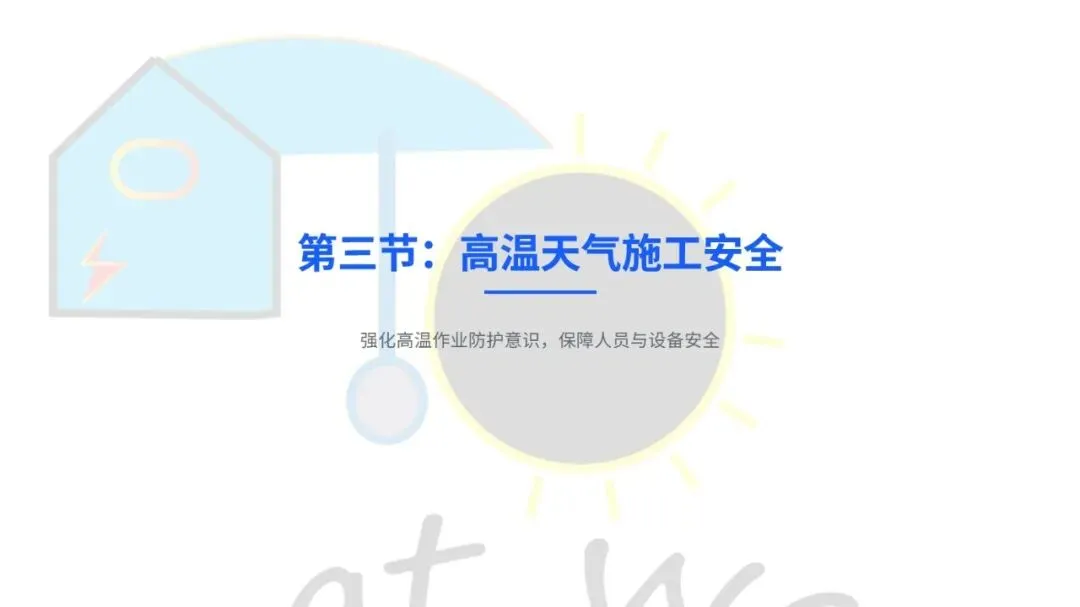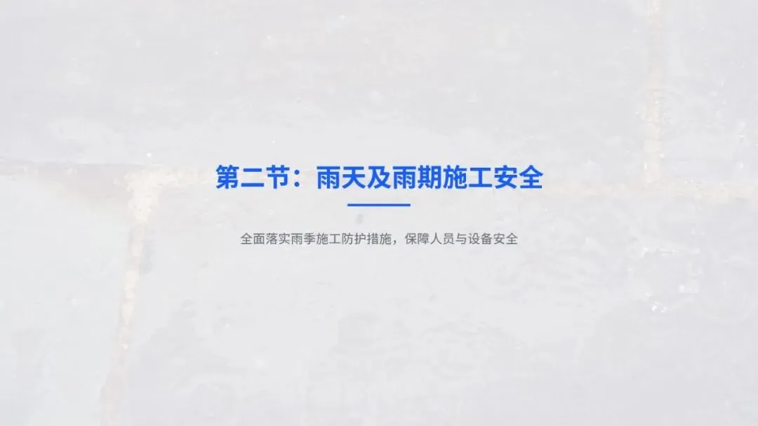 核心内容上,培训重点拆解了大风、暴雨、高温等八类特殊天气的风险点,以及不同天气下的分级安全操作规范,比如多大风力该停工、不同雨量下的作业要求,都讲得具体可操作。最后也明确,施工安全要从被动应对恶劣天气,变成主动做好防控,通过强化安全文化、借助技术手段、持续优化做法,形成良性管理循环,真正落实 “安全第一、预防为主、综合治理”,让每一次施工都能在复杂天气里安全推进。