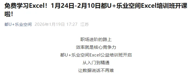 免费学习Excel!2月10日都U+乐业空间Excel培训班开课啦!
