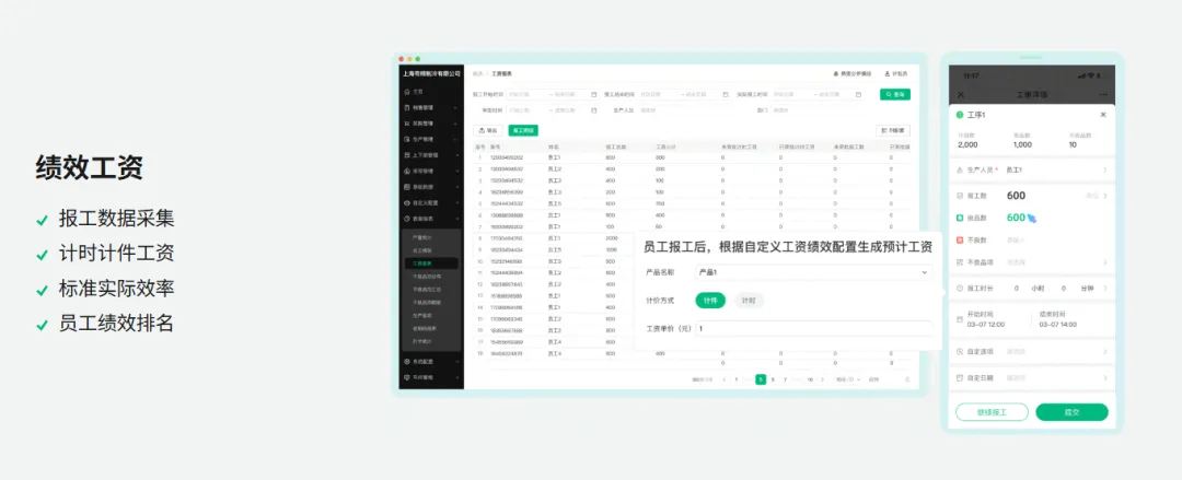 以前计件工资月底统计,工人不知今天挣多少。现在每报一次工,系统自动累加工资,随时查看当日收入。