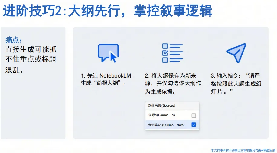 担心AI抓不住重点?可以先让系统生成“简报大纲”,审核修改后再基于大纲生成完整PPT。这样既能保证逻辑连贯,又能融入你的科研思考。