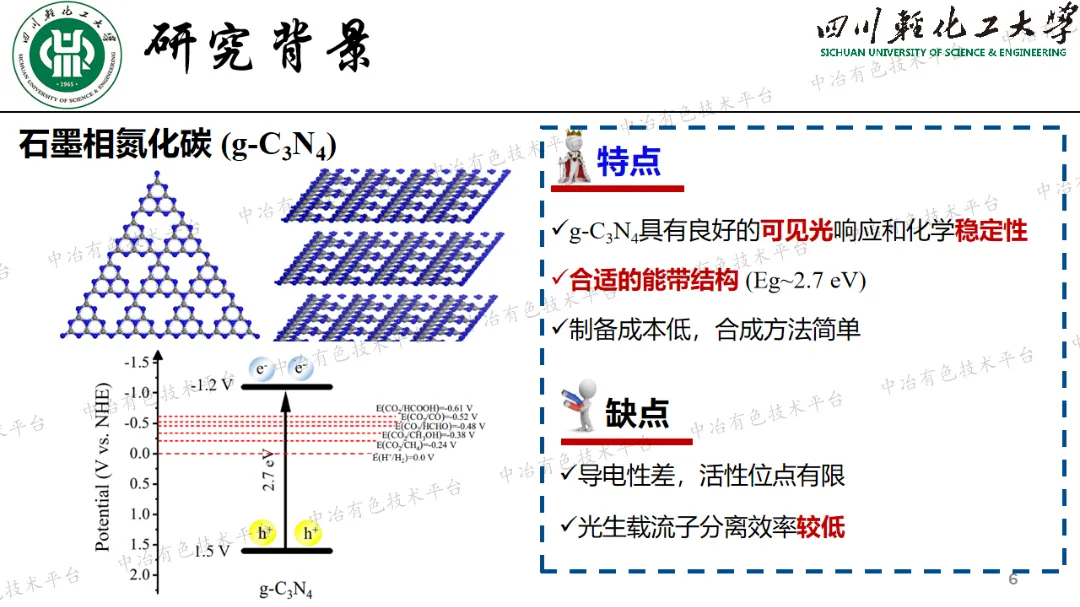 今天给大家带来的是 四川轻化工大学 钟俊波老师 分享的“缺陷调控型g-C3N4的构建及光催化性能增强”,希望大家喜欢。
