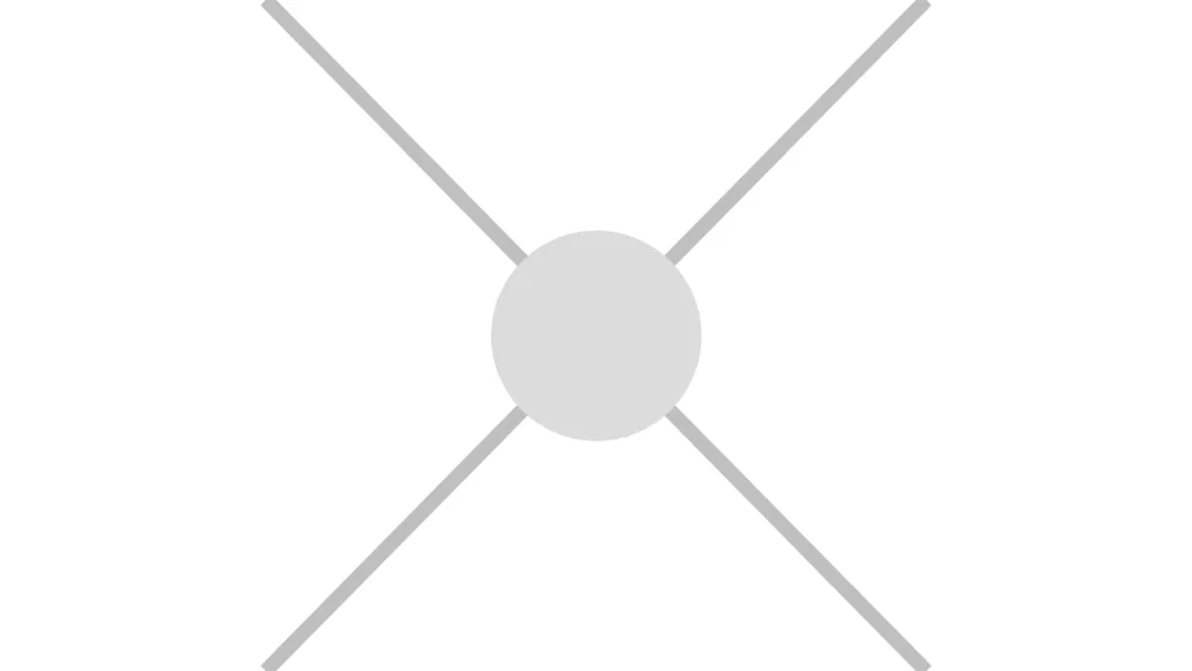 首先,我们绘制两条相交的对角线,形成一个 X 形,做为辅助线,中间放上一个色块作为中心点占位。