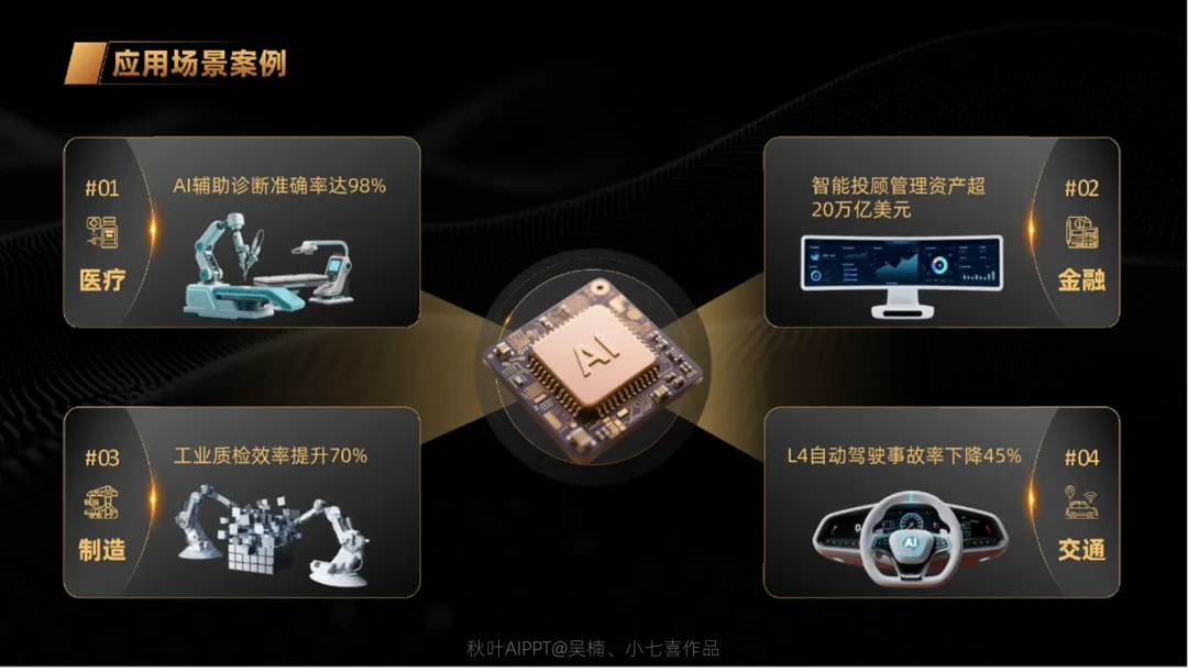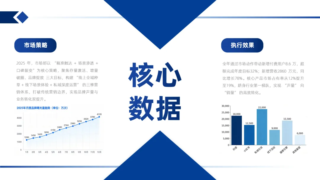 我们在中间加上重点信息(如标题、核心数据或重要结论),确保观众迅速捕捉到核心内容,提升信息传达效率,然后按照自己的喜好替换一下对角线的样式↓