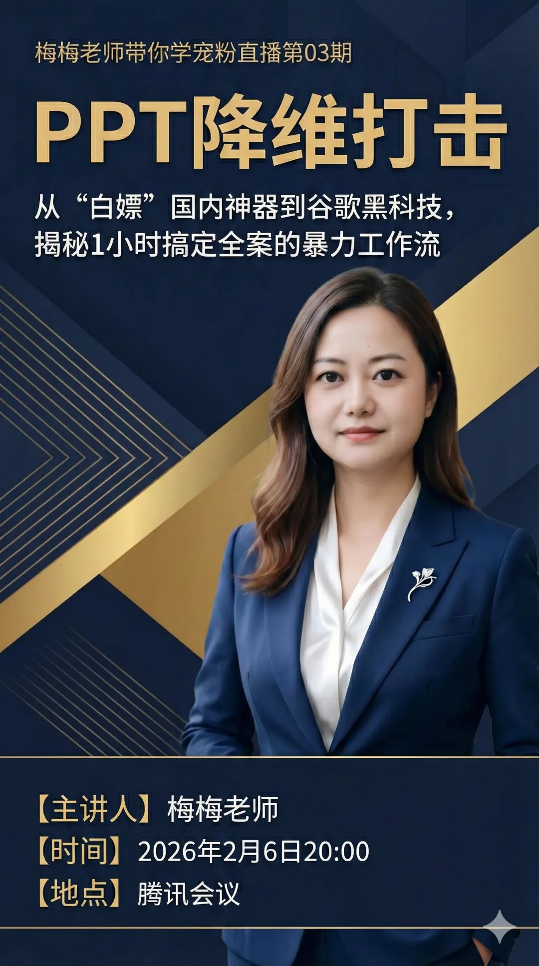 开软件 → 找模板 → 开始写内容 → 发现逻辑不对 → 推翻重来 → 熬夜你没说给谁看、讲什么、要多少页、什么风格。AI只能猜,猜出来的东西,当然不是你想要的。✅ 你是一位战略咨询师。请根据下面的数据,为CEO撰写季度业务回顾的PPT大纲。要求逻辑层层递进,标出3个核心问题和对应建议。每页写一个不超过10字的金句标题。用Markdown格式输出,带页码。这个公式用在任何工具都有效。Kimi、豆包、千问、智谱清言,都行。而且逻辑层的这些工具,目前全是免费的。AI生的PPT,八成排版都不完美。但修改其实快得多,掌握三条就够。每一页只传递一个信息点。你觉得重要的东西塞在一起,观众看不懂,讲得也乱。砍掉多余的,留下最重要的一句。PPT不是报告。报告是读的,PPT是看的。空白是设计的一部分,不是浪费空间。你现在看到的那些“看起来专业”的PPT,留白都占了至少一半的版面。你用了四五种字体,排版看起来就是乱。这条违反了,整张PPT都没救。深色背景配浅色文字,或者浅色背景配深色文字。别搞灰色文字在白色背景上那种东西,那是失敬。重点信息用一种对比色拉开。别让所有东西都一样重,那等于什么都不重。但你说“给我画一张商务图片”,出来的东西,基本就是废料。例如:现代写字楼大厅,从上方俯瞰,极简风格,暖色调,无人物。不想自己生图的话,WPS AI和百度文库等AI工具都有智能素材匹配,上传内容后自动配图。省事很多。PPT里有数据的时候,手动画图表,是最浪费时间的事。方法一:Excel直接同步。数据在Excel里处理好,插入PowerPoint,选“链接数据”,图表自动生成、自动更新。以前用多少时间画图表,现在用0分钟。方法二:让AI帮你生图表代码。把数据丢给Kimi或DeepSeek,说“生成一个柱状图的HTML/SVG代码”,它直接给你代码,复制粘贴到PPT里就行。出来的图表比你手画的还好看。方法三:用百度文库GenFlow。数据上传,智能工作流自动生数据可视化页面。操作简单,适合不想折腾代码的人。核心逻辑: 数据处理在外面搞完,PPT只负责展示。这个流程的问题:PPT做好了,你讲什么就不清楚了。上台才发现PPT的逻辑和自己想讲的不一样。先定演讲思路 → 再生PPT大纲 → PPT是演讲的翻译PPT的每一页,都对应你要讲的一个点。而不是你在PPT上看到什么就讲什么。NotebookLM :把你的资料丢进去,它帮你理逻辑、提炼要点、甚至能生成播客对话版本。相当于有人先帮你把东西读一遍。Gemini Canvas :你把演讲逐字稿丢进去,它帮你润色、改语气、扩写缩写。演讲前用来打磨稿件,效率极高。PPT不是终点。PPT是把你想讲的东西,翻译成观众能看懂的形式。如果你经常做同一类PPT——周报、月报、项目复盘——这个技巧能省掉你80%的重复工作。想要PPT + 语音一体 → ListenHub(重点推荐)做深度研究级别的汇报 → 谷歌 NotebookLM你不需要会设计。 你不需要会美术。 你不需要会排版。AI把设计、排版、生图、数据可视化这些事情,全帮你干了。2月6日晚上8点,梅梅老师带你学·宠粉直播第03期,手把手拆解这条暴力工作流,逻辑、生图、极客进阶,全程实操。社群学友们,欢迎一起来学。🎁 粉丝福利:关注本公众号,在后台私信关键词【AIPPT】,系统自动发送给您整理好的AI辅助PPT的工具链接。