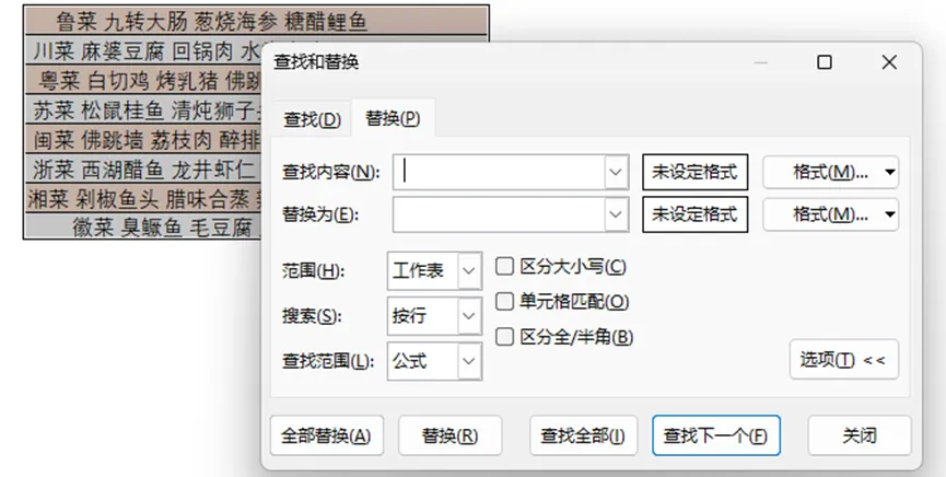 完成替换后,单元格内的所有空格都被删除了,包括词与词之间的空格。