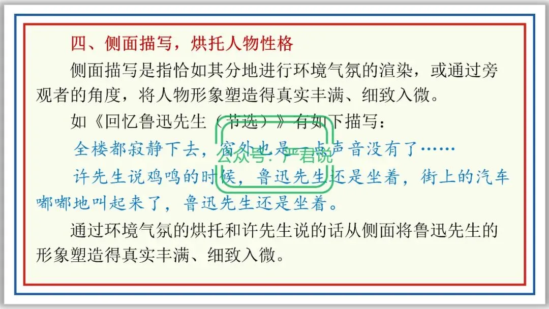 七下“写出人物的精神”准备课:正侧描写锦囊