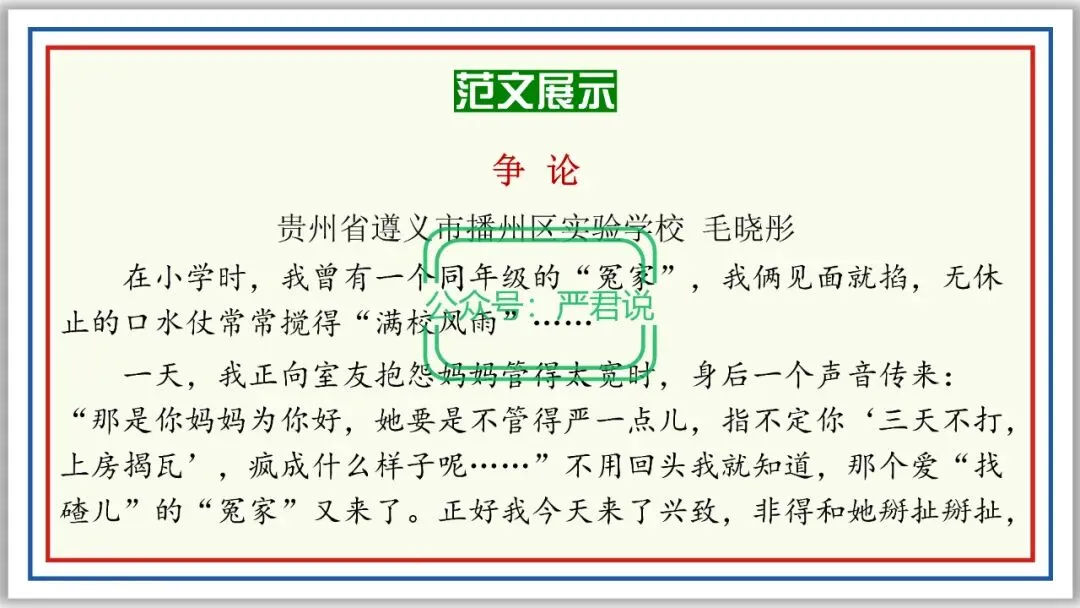 七下一单元“争论”②吸睛文段+写作提纲+高分范文