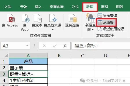 1. 选中数据表的任意单元格 --> 选择工具栏的“数据”-->“从表格”