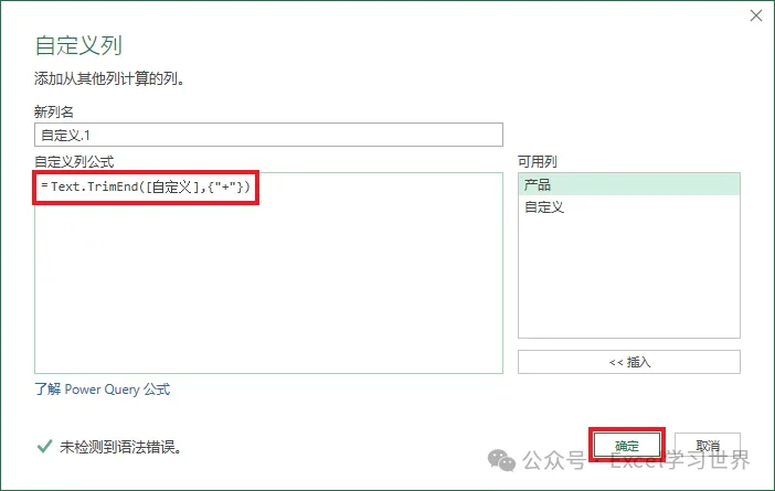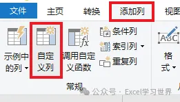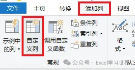 5. 再次选择工具栏的“添加列”-->“自定义列”