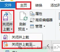 9. 选择工具栏的“主页”-->“关闭并上载”-->“关闭并上载至”
