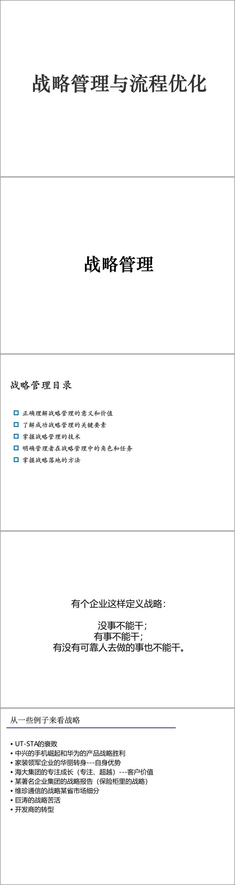 这份材料通过丰富的案例分析——如UT斯达康的衰败、华为的产品战略胜利等——生动展示了战略与流程管理对企业兴衰的决定性影响。它强调,在日益复杂的市场环境中,对战略的深度思考是企业最好的自我保护,而流程优化则是将战略设想转化为竞争优势的必由之路。