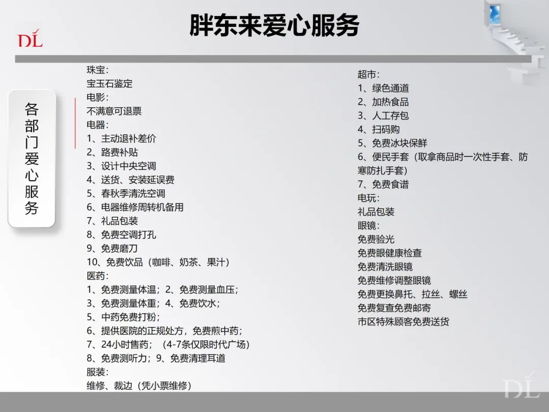 人性化的服务是胖东来成功的重要因素之一,无论是许昌的胖东来门店,还是新乡的胖东来门店,高标准、人性化、重细节的服务,均赢得了顾客与同行的赞誉。新乡胖东来门店的爱心服务细节和各主要部门的爱心服务,和大家一起分享。