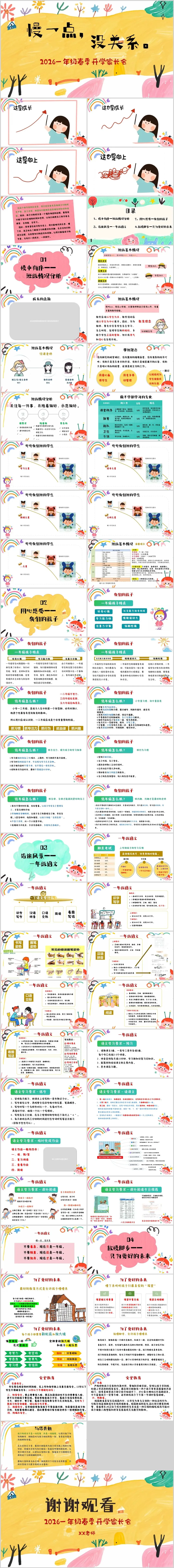 今天,就为大家推荐一份我刚发现的宝藏级家长会PPT模板!它围绕 “慢一点,没关系” 的核心理念,专为一年级新生家长会设计,结构清晰、内容详实、情感真挚,绝对能帮你打造一场有温度、有深度的家长会!