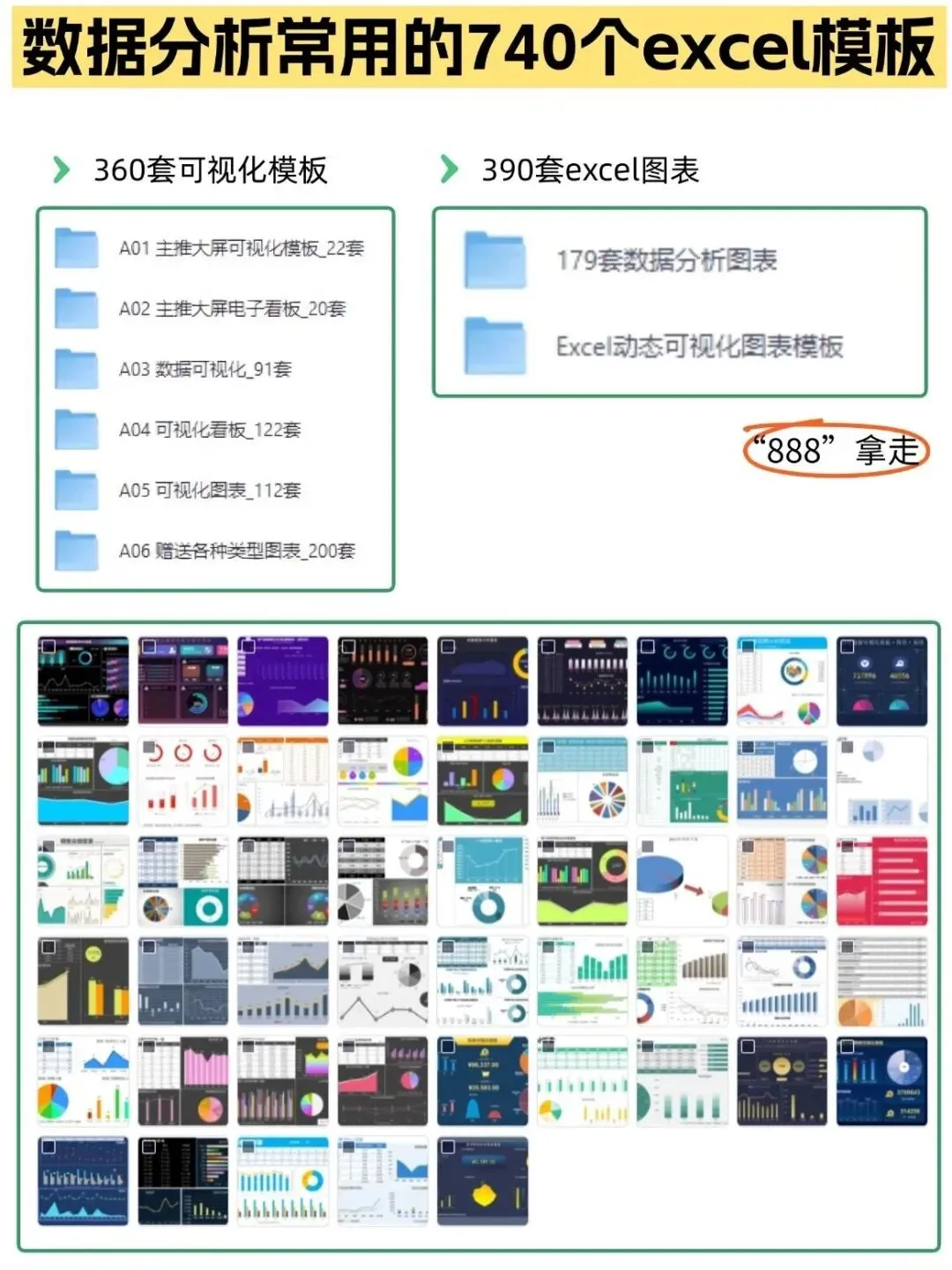 ✅ 数据分析岗:360 套可视化大屏模板 + 390 套图表;