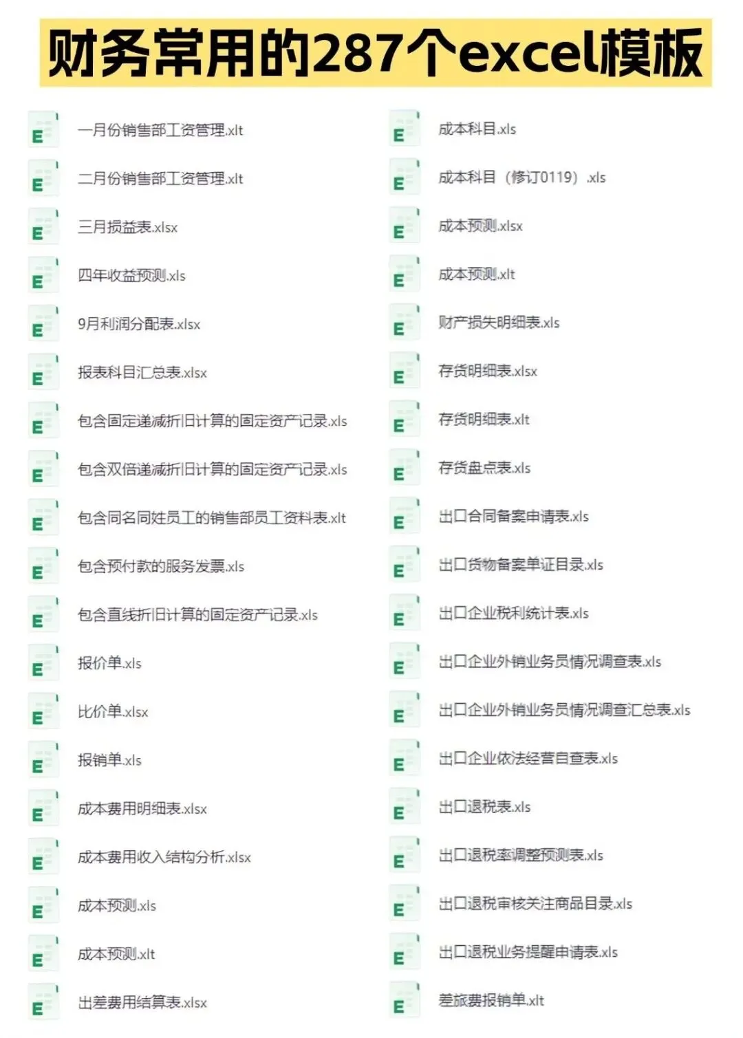 ✅ 财务岗:287 套专业模板,工资表、成本预测、损益表、报销单、固定资产折旧表一应俱全;