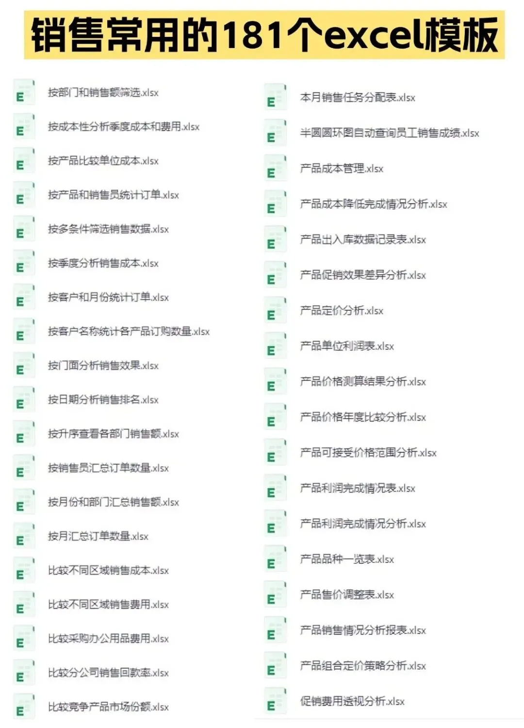 ✅ 销售岗:181 套业绩模板,销售台账、客户分析、任务分配表、竞品对比表直接用;