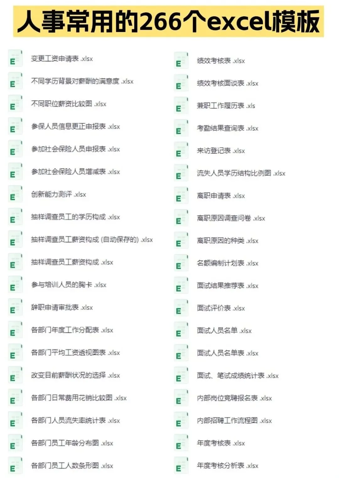 ✅ 人事岗:266 套表格,绩效评估、考勤统计、员工档案、离职调查、培训计划全覆盖;