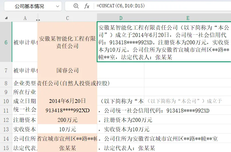 1. 求和:SUM(数值1,数值2,数值3...)数值为一个或连续多个单元格,也可以是一行(列)或多行(列),同一工作簿内也可以跨表计算。2. 求平均值:AVERAGE(数值1,数值2,数值3...)3. 计数:COUNT(数值1,数值2,数值3...)进阶:ROUNDUP(向上舍入数值)、ROUNDDOWN(向下舍入数值)6. 返回以序列号表示的某日期的年份:YEAR,返回月份:MONTH,返回天数:DAY,返回星期:WEEKDAY7. VLOOKUP(查找值, 数据表, 列序数, 匹配条件)按全称在其他表中查找数据的运用场景非常多,再举个按关键词查找的例子(某案件审计实例,只有简称,需在另外一个表格中查找全称):8. XLOOKUP(查找值, 查找数组, 返回数组, 未找到值, 匹配模式)根据一个值,一次性列出与该值相关的一组结果,如下例,只需在B2单元格输入一个公式,便可得到性别、入职日期、岗位等多列数据:(示例将数据源放在同一个表格,实际运用中数据源多在其他表格中)9. 判断一个条件是否满足:IF(条件, 真时返回值, 假时返回值),举例如下:11. TEXTJOIN 加 IF 组合应用,如下图:注:上图是【审计工作底稿】中用该函数对异常指标情况进行汇总13. 将多个区域或字符串中的文本组合起来CONCAT14. 计算区域中满足给定条件的单元格的个数 COUNTIF15. 计算多个区域中满足给定条件的单元格的个数 COUNTIFS17. 对区域中满足多个条件的单元格求和:SUMIFS18. 返回数据清单或数据库中的分类汇总:SUBTOTAL(筛选条件下,点击“∑”求和符号自动弹出该函数)19. 返回文本字符串中的字符个数(包括空格):LEN运用场景:审计中,快速区分科目余额表中科目级别(如一级科目代码为4位,二级科目代码为6位,三级科目代码为8位);确认一列身份证号码是否为18位,手机号是否为11位等,快速找出错误数据。20. 从文本字符串中指定位置开始,提取指定长度的字符串:MID运用场景:从一列身份证号码中提取出生年月日,或单独提取年。21. 计算二个日期之间的天数、月数、年数 DATEDIF22. 返回日期和时间格式的当前日期和时间:NOW 23. 将数值转换为按指定数字格式表示的文本:TEXT使用方法:第1步写好提示词,第2步让AI工具写代码,第3步将代码插入VB模块中,第4步在单元格中录入中文函数名称。26. 返回由数值代表的一组现金流的内部收益率:IRR27. “提取数值并求和”中文函数【AI运用】