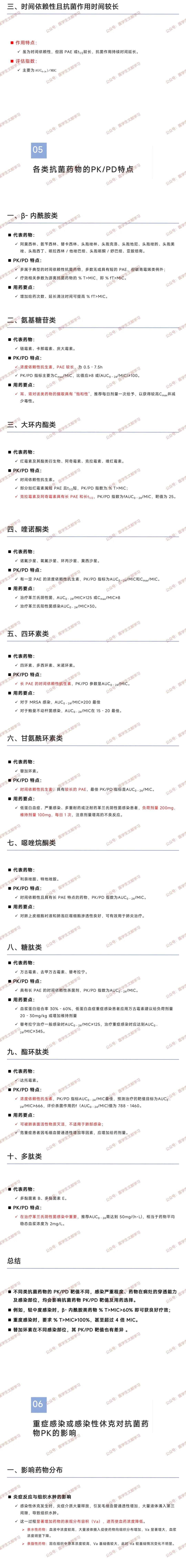 五、各类抗生素的 PK/PD 特点与用药要点