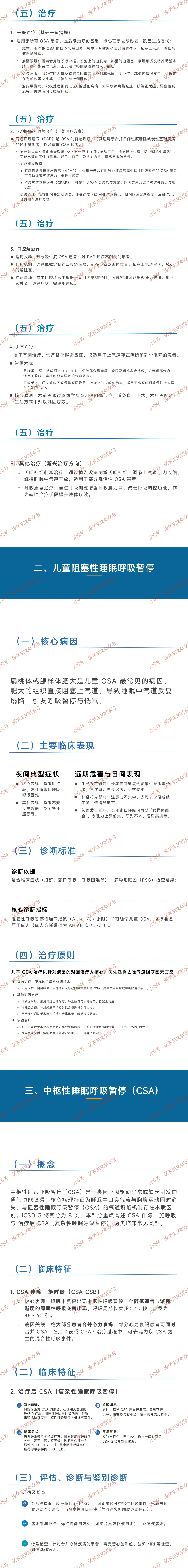 - 鉴别:需与原发性鼾症(无呼吸暂停 / 低氧)、肥胖低通气综合征、中枢性呼吸暂停等区分。