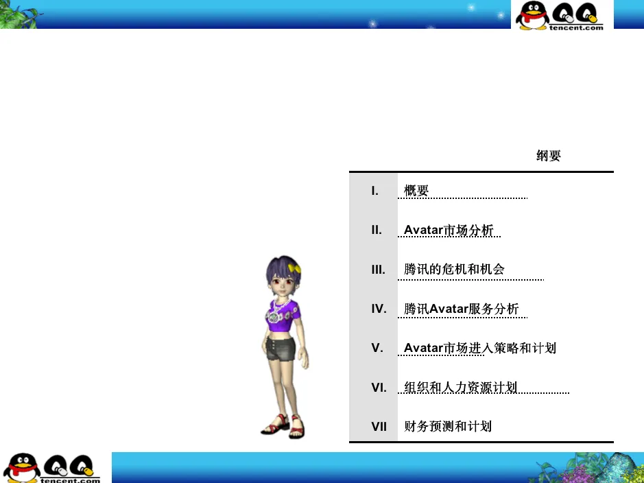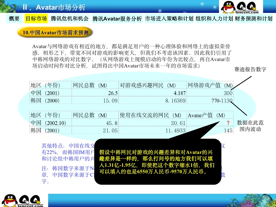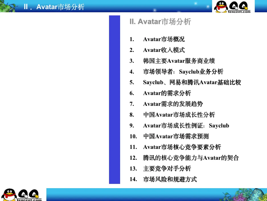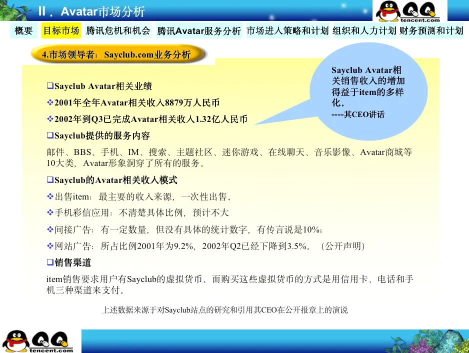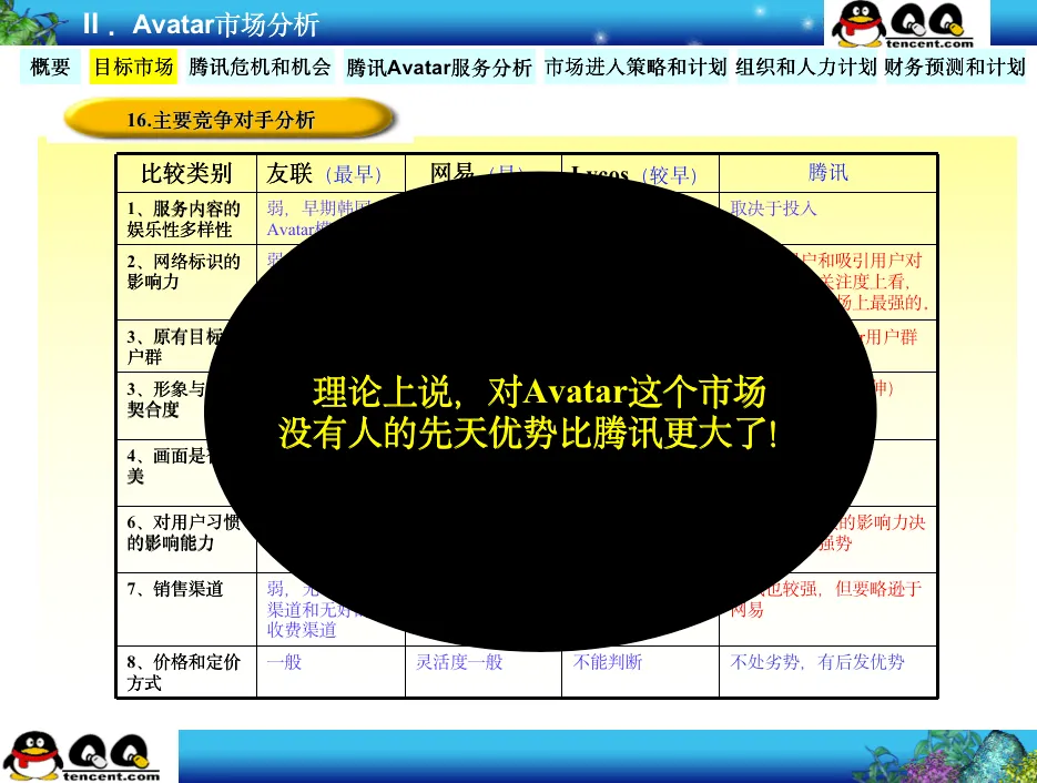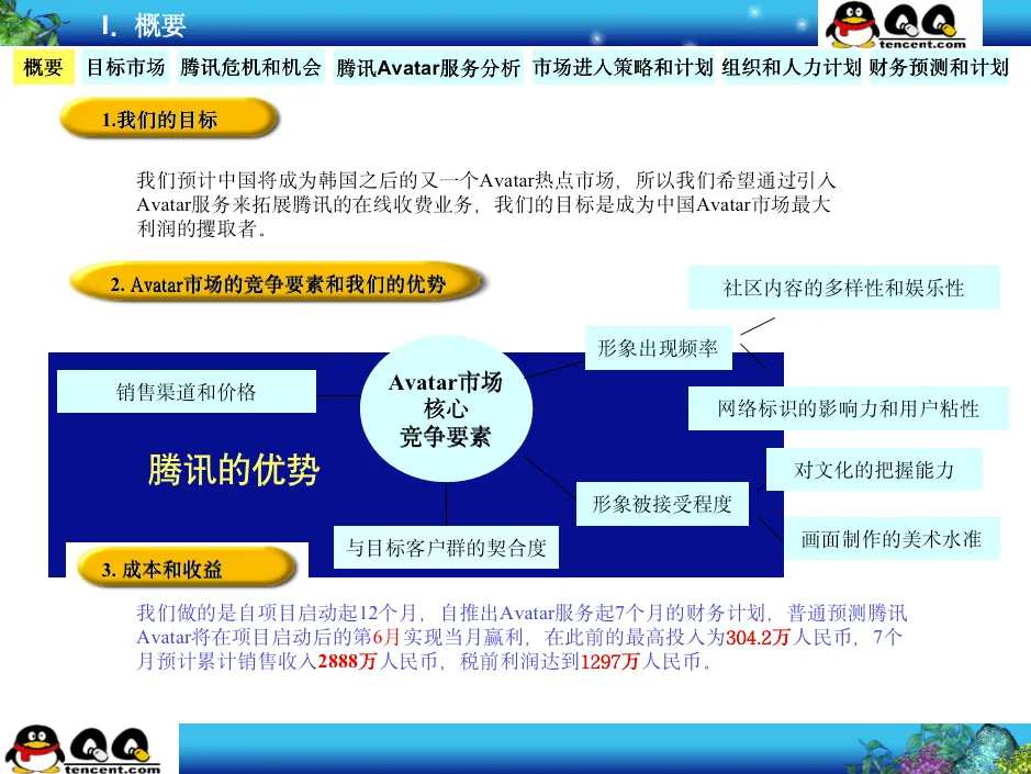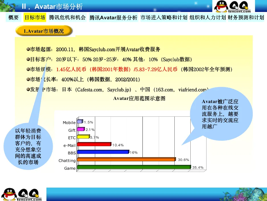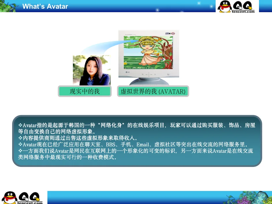 这份PPT的名称为《Avatar Business Plan》,“阿凡达商业计划”,即后来QQ秀的网络化身装扮业务,它的由来要追溯到2002年8月左右。