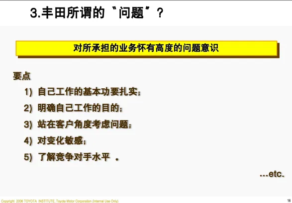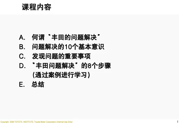 今天分享是网上获取到他是丰田培训用的资料: