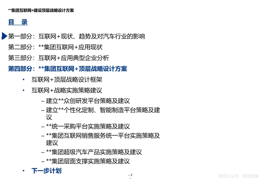 关注“零竖质量”公众号,文末附《汽车行业互联网+数字化战略规划方案 P143》文件下载方式。 |
