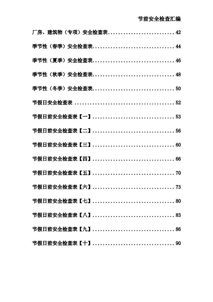节假日前安全检查表四