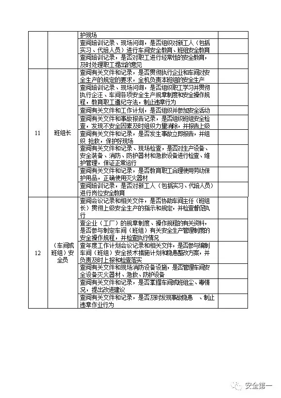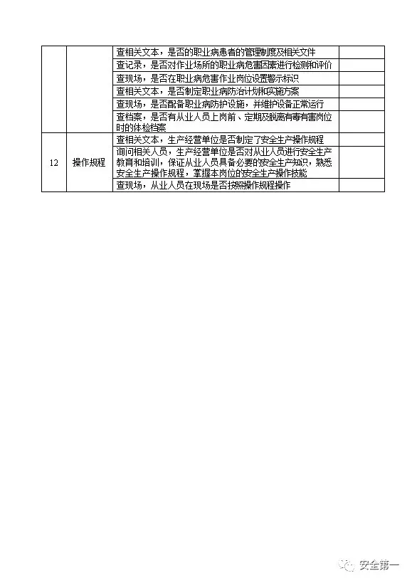 节假日前安全检查表十二