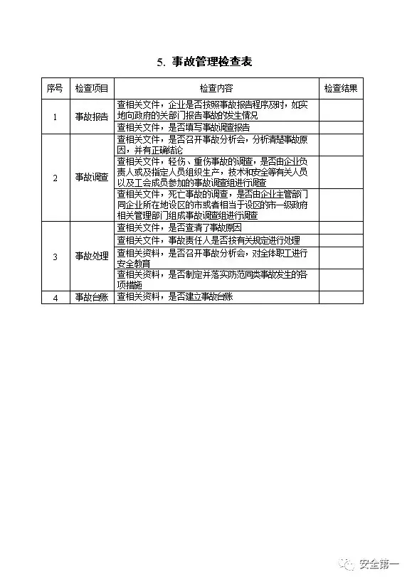 节假日前安全检查表五