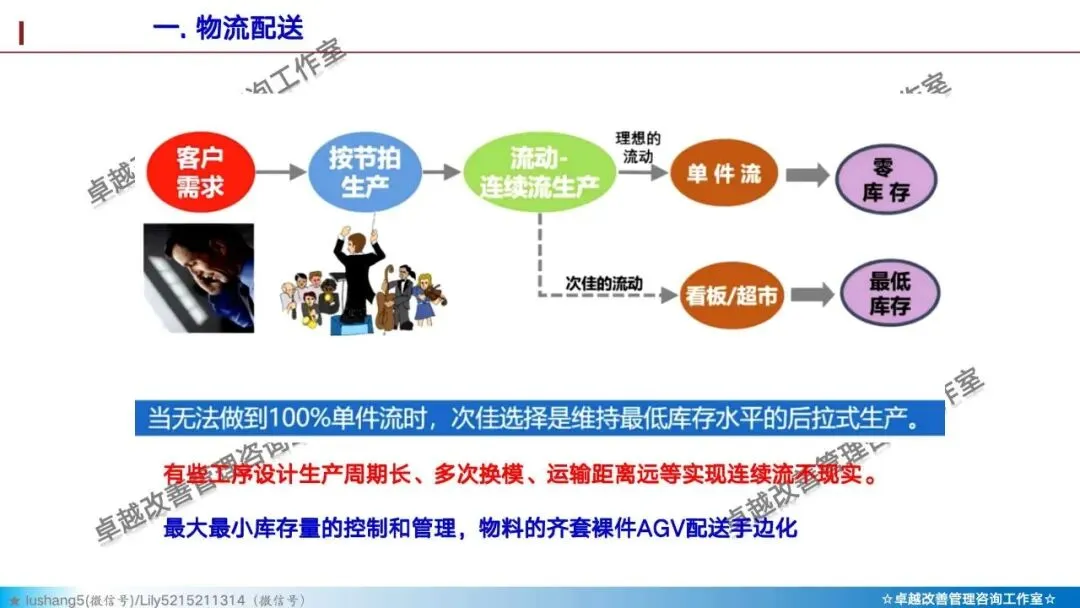 关键实践包括:建立拉式系统(如看板)、实施循环取货(Milk Run)、进行标准化作业、布局优化以实现物流动线最短、与供应商深度协同等。