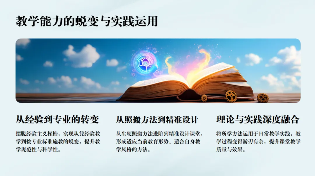 聚是一团火,散是满天星。我不仅是学习者、受益者,也十分乐意成为传播者和引领者。如果我的专业成长,点亮了更多课堂、温暖了更多学生,那么我的教育人生也变得更有重量、更有温度。
