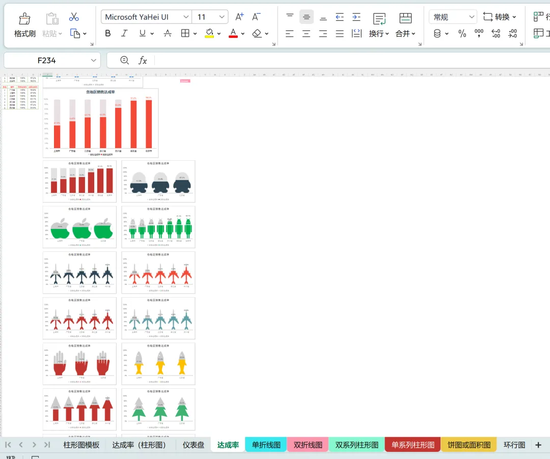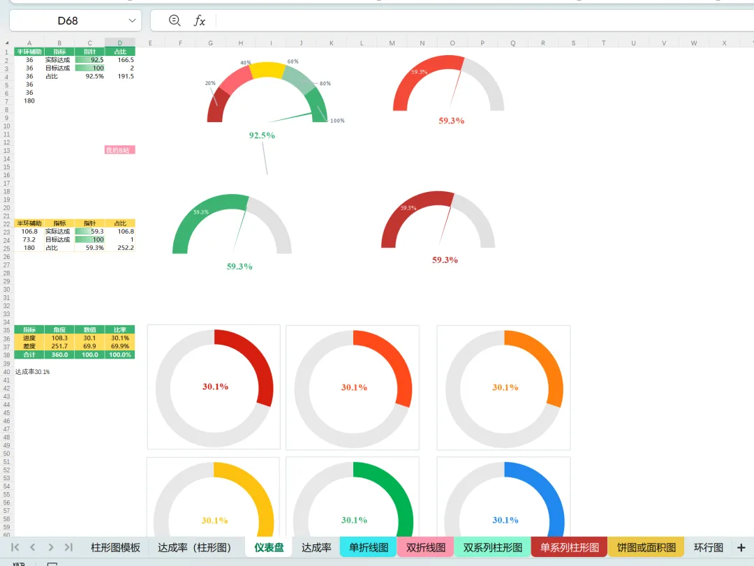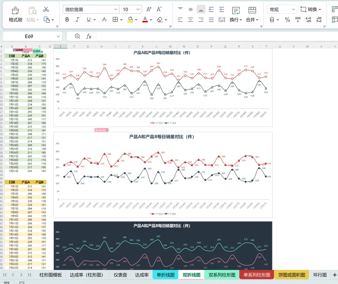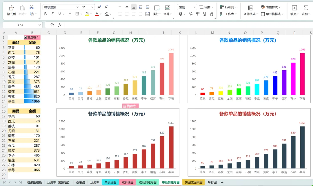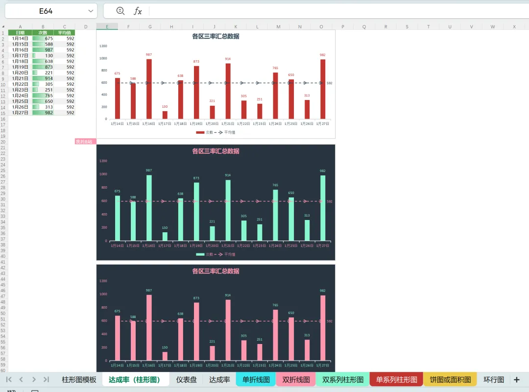 Excel图表教程 | 同时展示分类达成和总目标