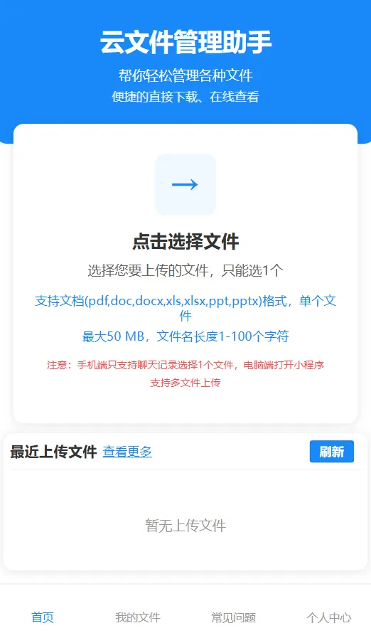 二、点击选择文件,选择文件后点击开始上传