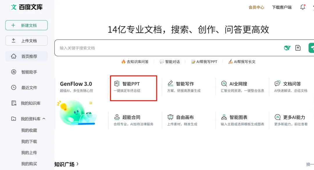 直接从首页的「智能 PPT 」进入。