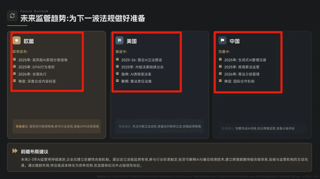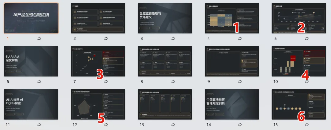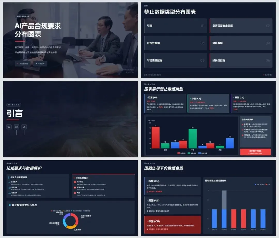 这三个文档,全是密密麻麻的法条和专业术语。我当时的要求很简单:我是出海创业者,基于这三份文件,做一份《AI产品全球合规红线》PPT,告诉我哪些数据绝对不能碰,分区域展示合规风险等级。