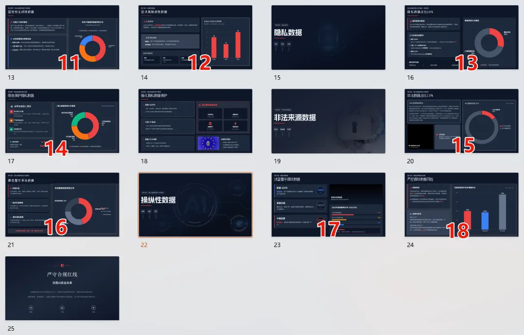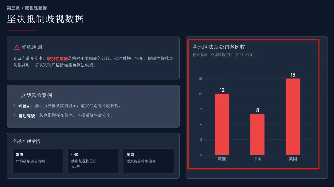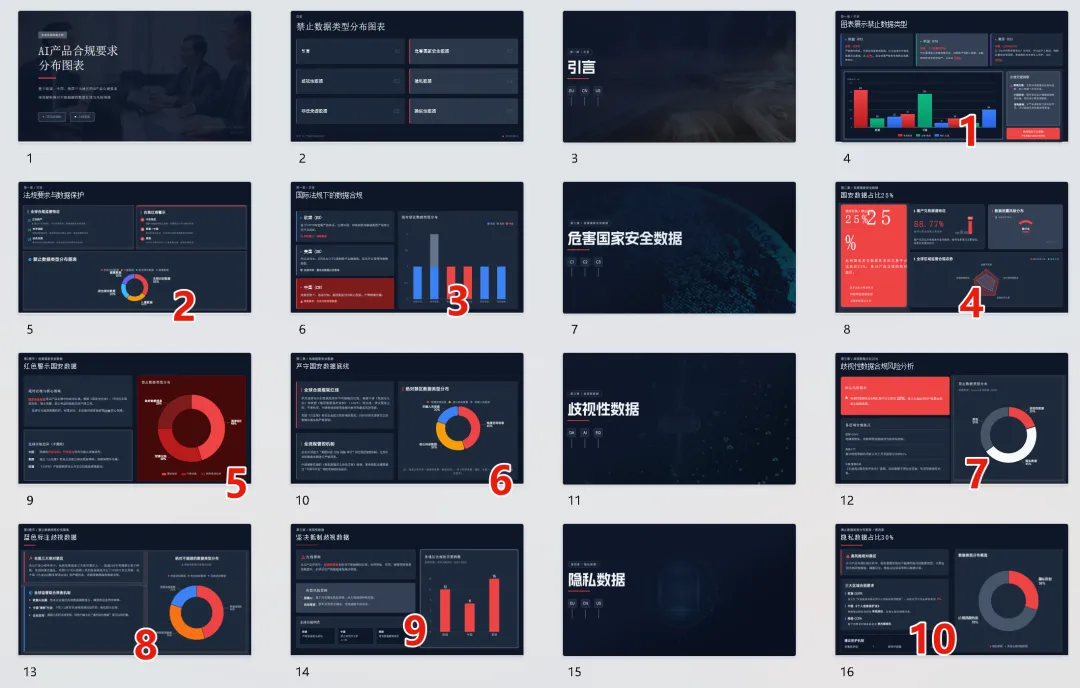 在 AI 产品合规这个选题里,我给出的 PDF 资料中,其实包含着大量的数据,而数据最好的呈现方式自然是图表,这就是数据可视化的作用。