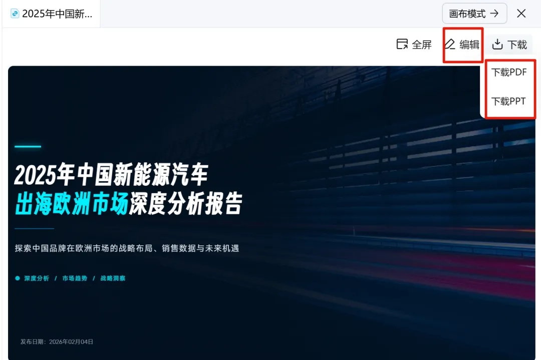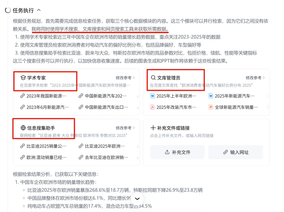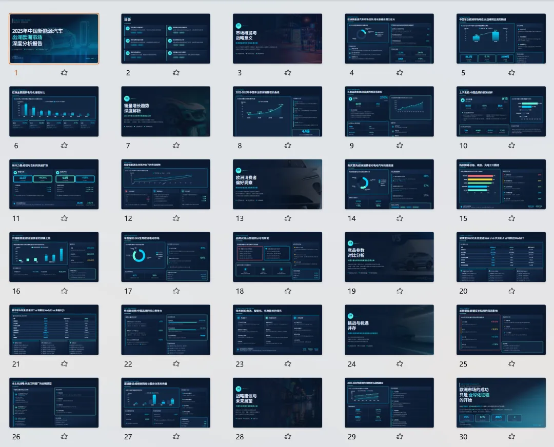 为了测试这个里子,我又出了一个新题目:《2025 年中国新能源汽车出海欧洲市场深度分析报告》。