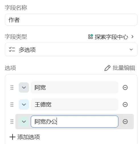 接着输入字段名称,可以删除或添加选项,来调整选项的数量,再输入所有选项具体内容。现在AI这么发达,利用AI写宏代码,也可以实现这个功能。