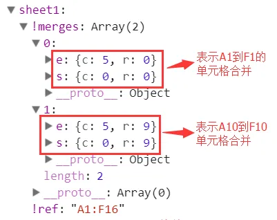 SheetNames:[ 'sheet1' , 'sheet2' ,......]; Sheet1: { !ref:"A1:D3", A1:{t: 's', v: '姓名', }, B1{ }, ......}Sheet2: { !ref:"A1:D3", A1:{ }, B1{ }, ......}SheetNames里面保存了所有的sheet名字,然后Sheets则保存了每个sheet的具体内容(我们称之为Sheet Object)每一个Sheet Object表示一张表格,只要不是!开头的都表示普通cell,否则,表示一些特殊含义,具体如下:sheet['!ref']:表示所有单元格的范围,例如从A1到F8则记录为A1:F8;sheet[!merges]:存放一些单元格合并信息,是一个数组,每个数组由包含s和e构成的对象组成,s表示开始,e表示结束,r表示行,c表示列;每一个单元格是一个对象(Cell Object),主要有t、v、r、h、w等字段(详见这里):t:表示内容类型,s表示string类型,n表示number类型,b表示boolean类型,d表示date类型,等等// 读取 excel文件function outputWorkbook(workbook) {var sheetNames = workbook.SheetNames; // 工作表名称集合 sheetNames.forEach(name => {var worksheet = workbook.Sheets[name]; // 只能通过工作表名称来获取指定工作表for(var key in worksheet) {// v是读取单元格的原始值console.log(key, key[0] === '!' ? worksheet[key] : worksheet[key].v); } });}