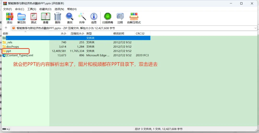 一、用WinRAR压缩工具导出PPT中的视频和图片