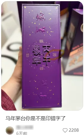 有眼尖的网友发现,茅台发售的丙午马年茅台生肖酒包装盒上有错字。