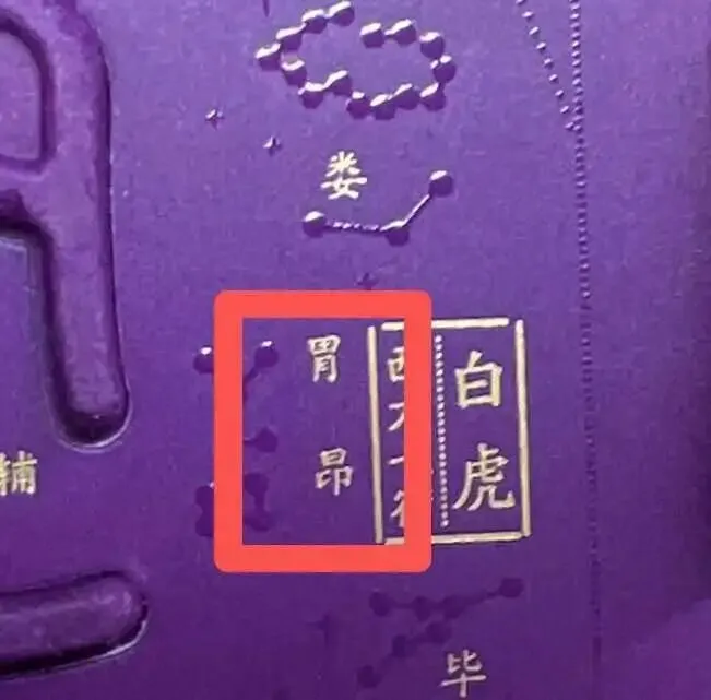 二十八星宿中“昴宿”的“昴”(mǎo)字被印错成“昂”(áng)字了 ↓