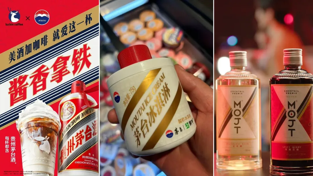 例如和瑞幸联名的酱香拿铁、还有茅台冰淇淋、茅台鸡尾酒等。
