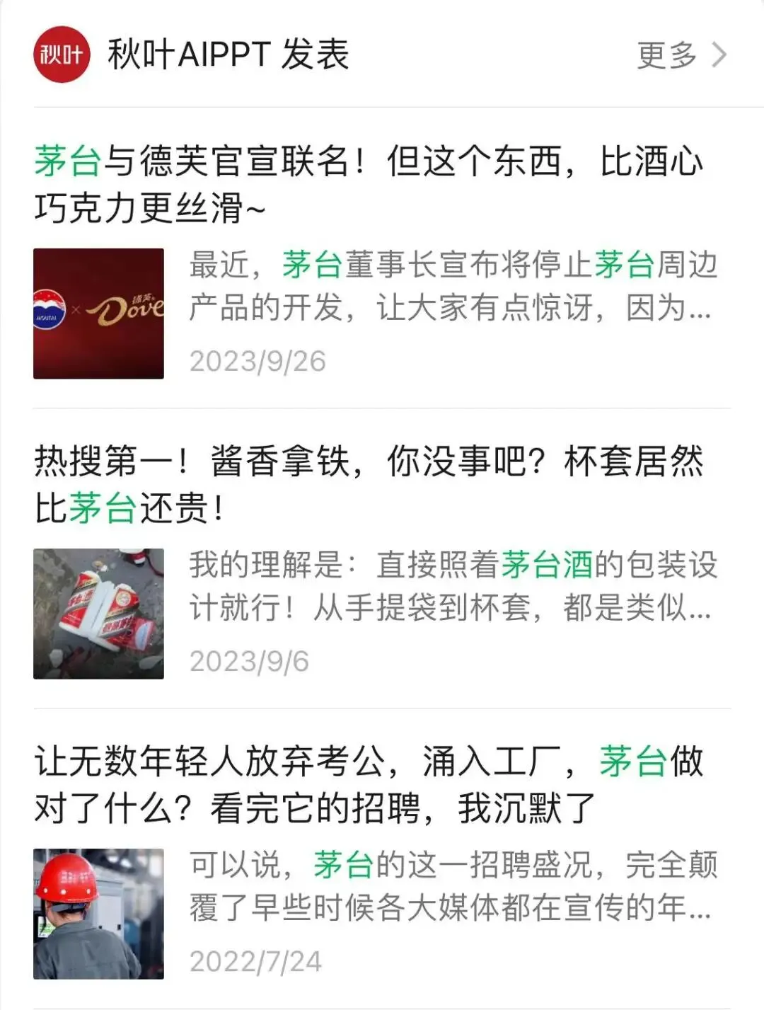 下面是秋叶 PPT 的学员给茅台做的三份 PPT ↓