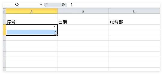 1.序号列:输入前2个数据(如A3=1、A4=2),选中这两个单元格,拖动右下角填充柄(小方块)向下,自动填充后续序号;